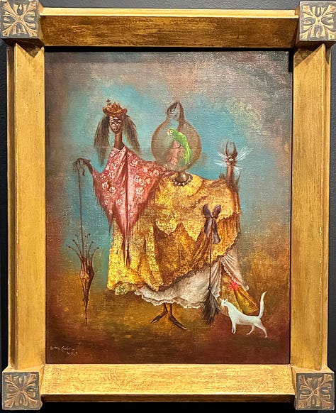 Last weekend we caught the incredible special exhibition currently on display at the Philadelphia Museum of Art, Dreamworld: Surrealism at 100. The Philadelphia exhibition, on view until February 16th, is the fifth and final show in the tour, and the only one in the United States. How incredibly orienting and inspiring to witness a generation of artists respond to fascism, genocide, and war with magic, ritual, mythology, and alchemy, finding refuge in nature and in their shared humanity. My favorite segment of the show, unique to Philadelphia, focused on artists who fled from Europe to Mexico and the U.S. during World War II, and included dozens of works by Leonora Carrington and Remedios Varo, who “first met as members of the surrealist circle in Paris in the 1930s…. escaping wartime France and landing in Mexico, where they would work and live as close friends.”